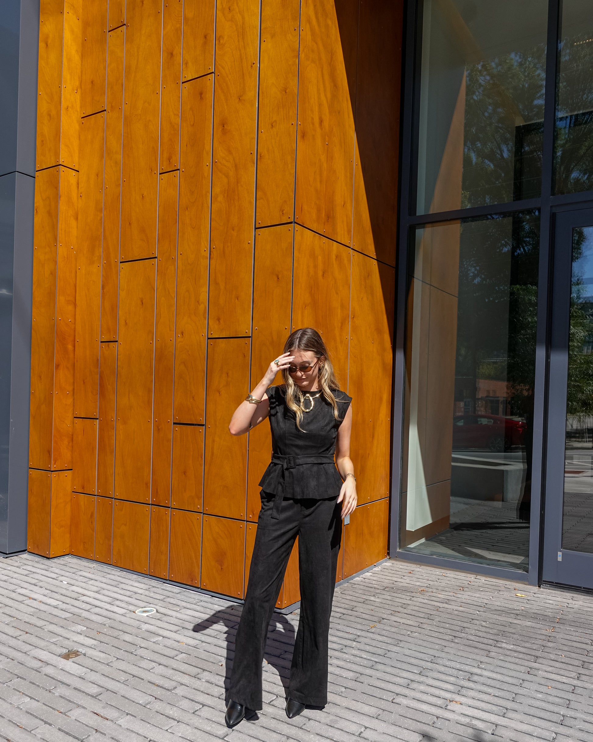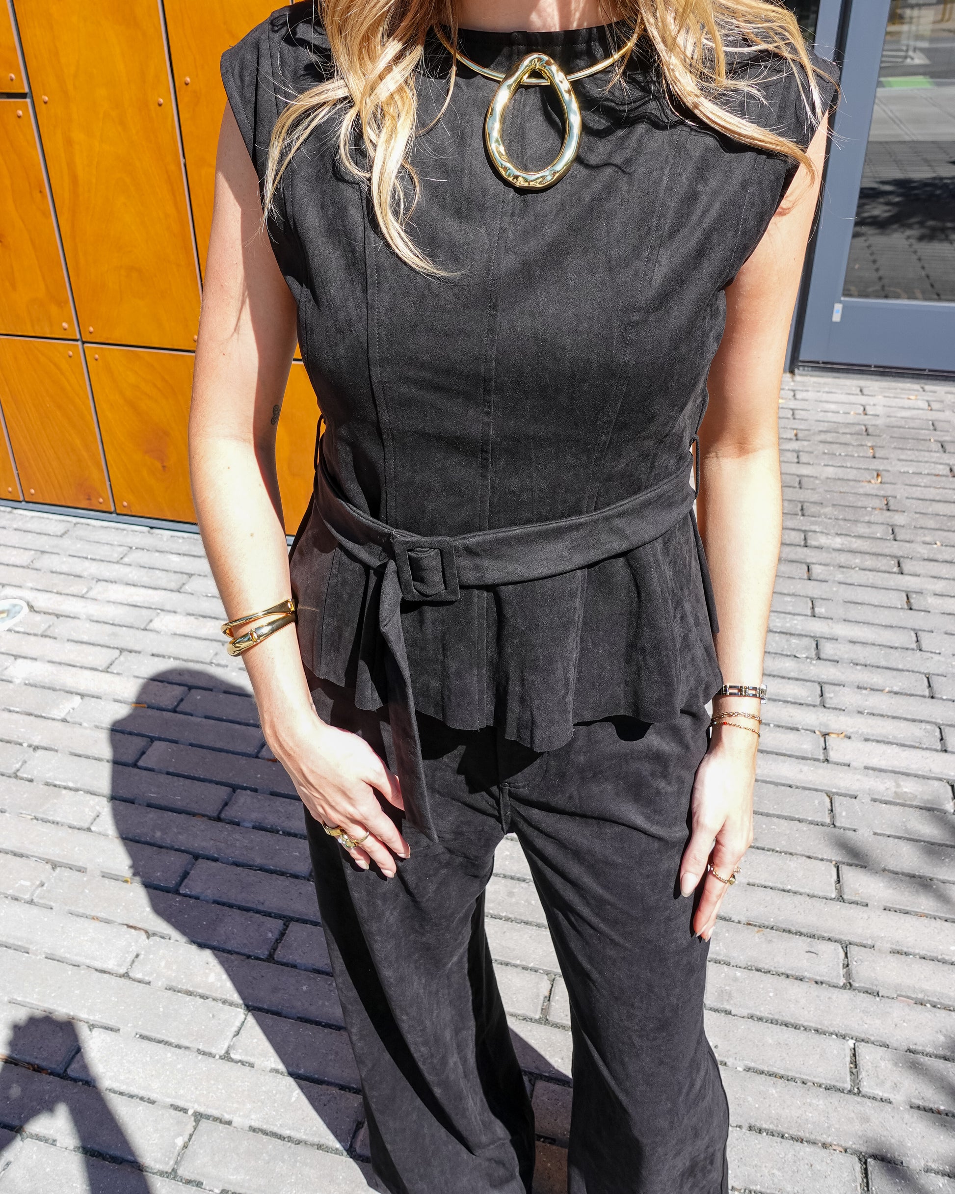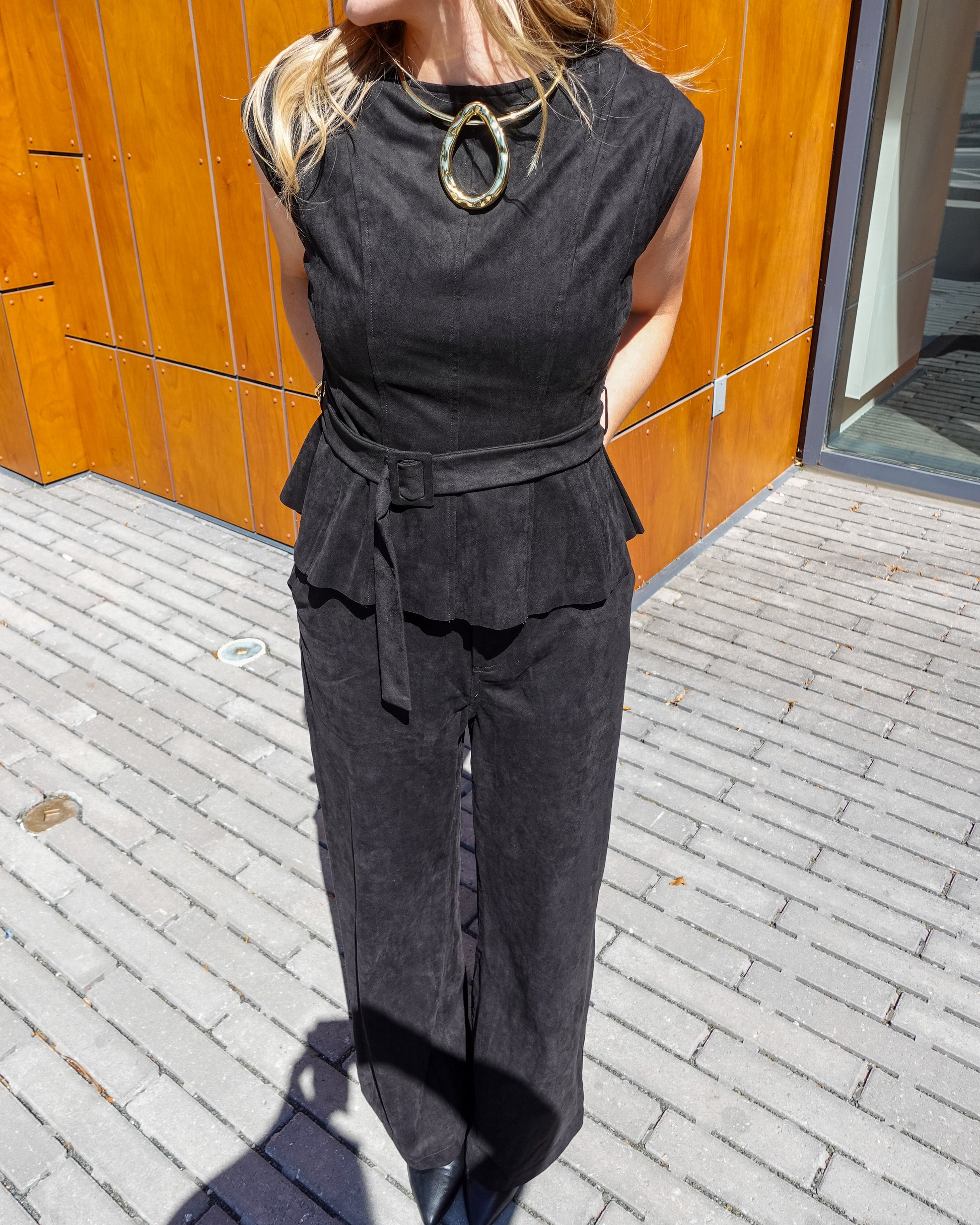 Step out in style with the Autumn Nights Set, featuring a soft suede top paired perfectly with matching pants. The belted top accentuates your waist, adding a flirty flair while keeping comfort front and center. This playful duo makes cozy evenings and casual outings effortlessly chic.