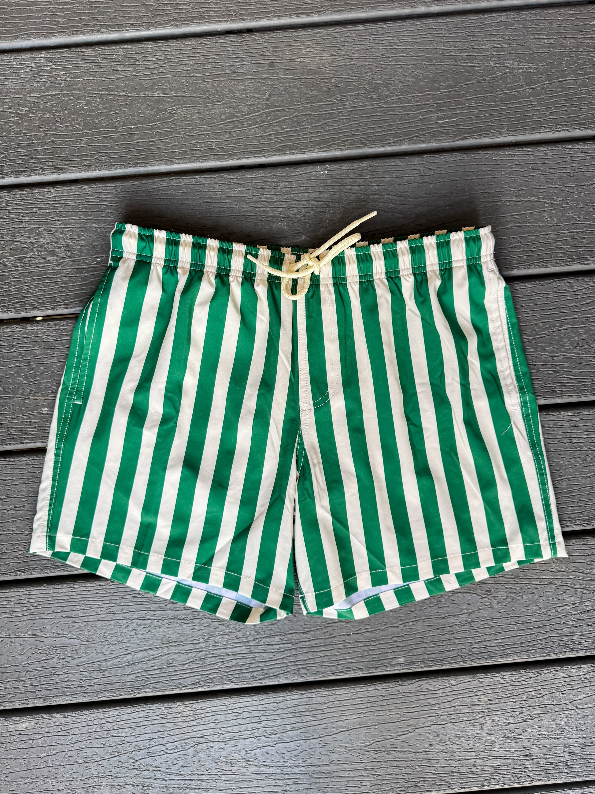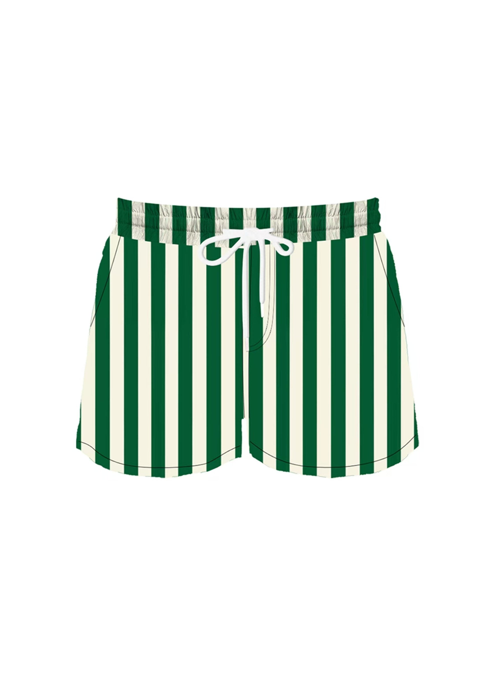 Get ready to make a splash with our Cabana Striped Swim Trunks! These cream and green striped trunks feature a drawstring tie waist and pockets for added convenience. Perfectly paired with our Cabana Striped Bikini Set. Get ready to hit the beach in style!