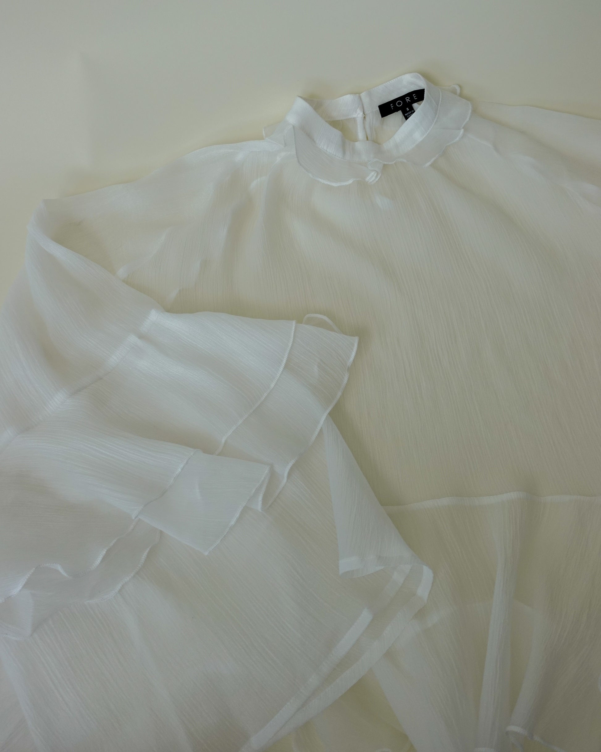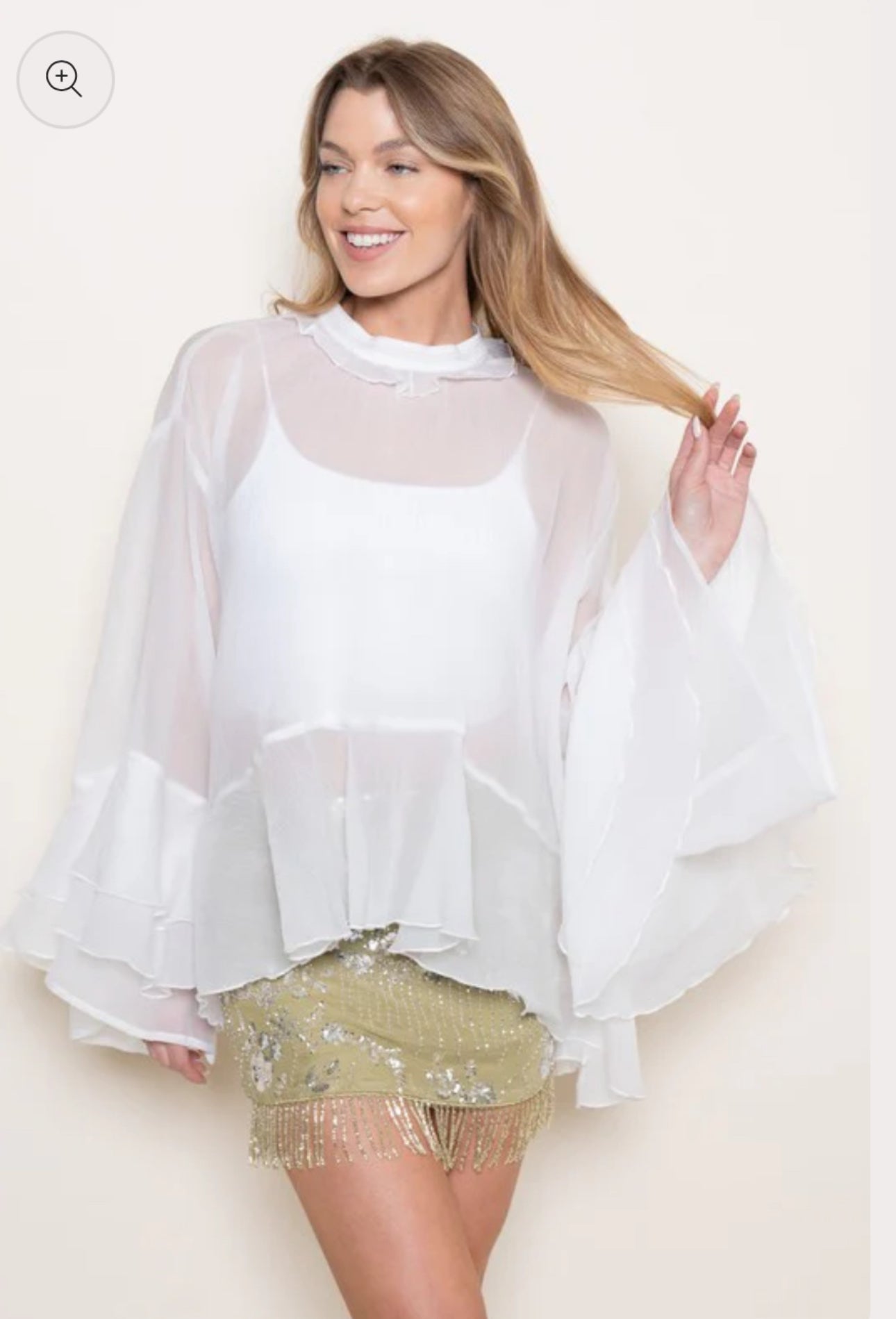 Unleash your romantic side with the Love Letters Sheer Ruffle Top. This oversize long top features delicate ruffles and a sheer appearance. Perfect for a playful date night or a weekend brunch with friends.