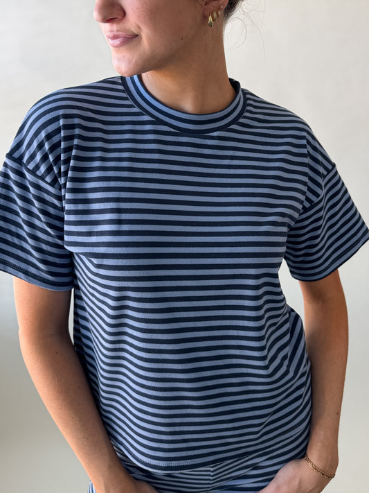 Introducing our Matilda Matching Set, a playful and versatile addition to your wardrobe! The tube top features delicate blue pinstripes and charming button detailing, while the matching drawstring pants offer the perfect fit. The top has a side zipper, but is stretchy throughout. Combine them for a fun and trendy look or mix and match for endless outfit options.